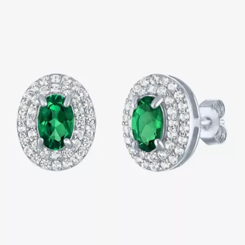 Gemstone & Lab-Created White Sapphire Sterling Silver Oval Double Halo Stud Earrings in Chattanooga, TN
