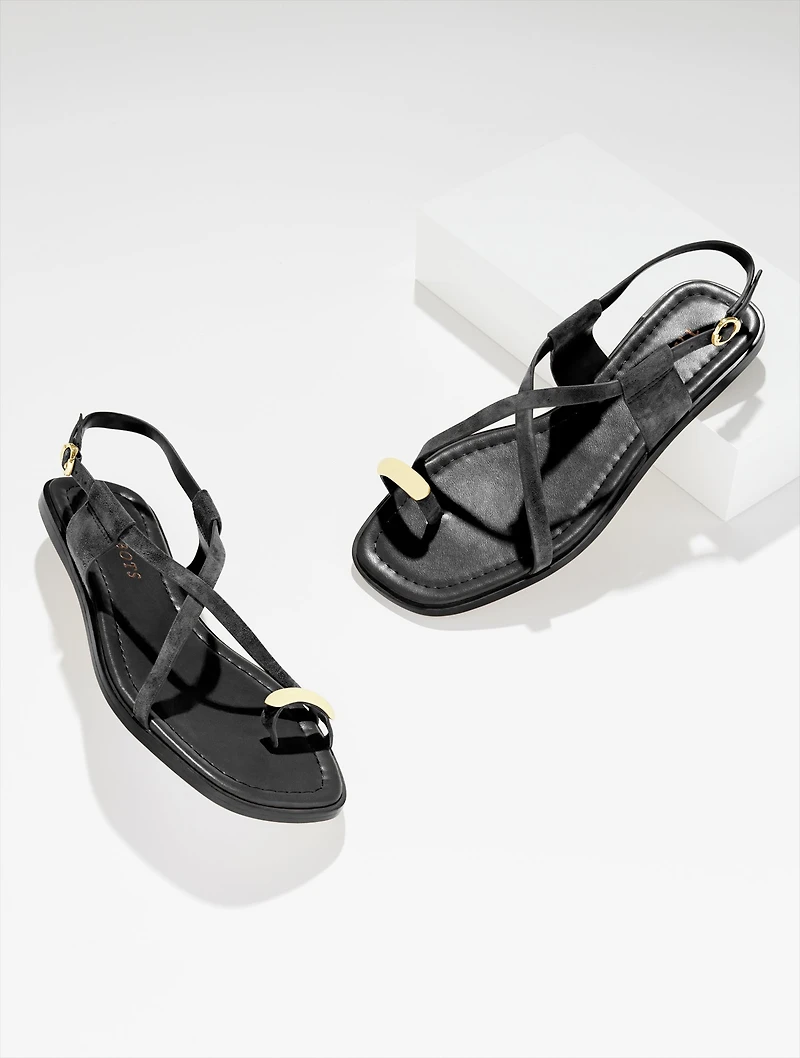 Elevate your everyday outfits! A polished ring highlights the toe loop of our casual-chic minimal sandals. Crafted from buttery-soft suede. Memory foam footbed feels great all day. Heel and arch padding for extra comfort and support. Flexible outsole for improved stability.