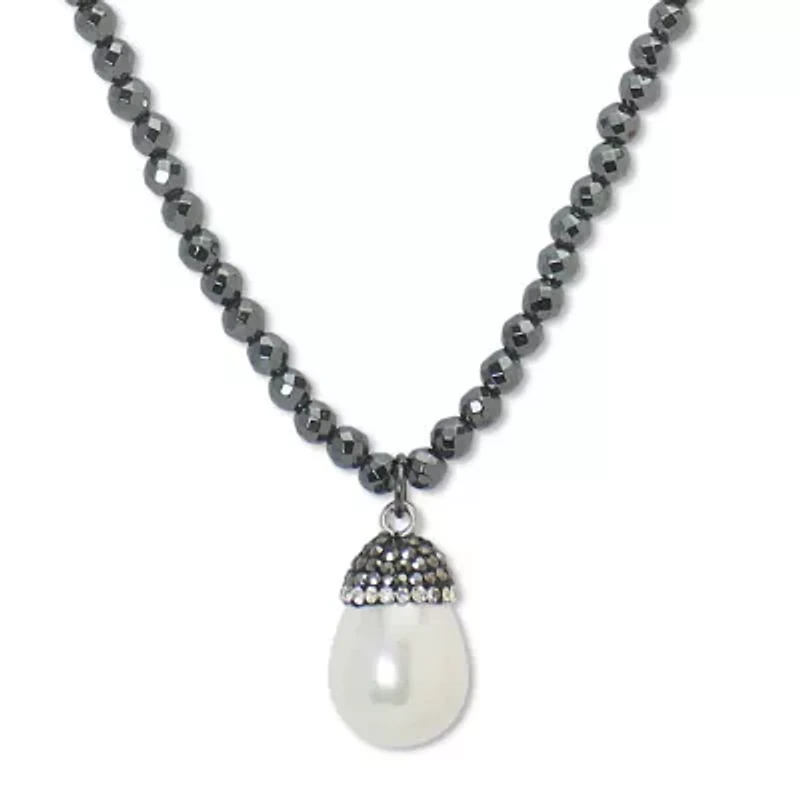 From little acorns grow mighty oaks. Embrace your inner strength with this symbolic cultured freshwater pearl pendant necklace. Featuring faceted hematite beads and crystal accents, this adorable acorn necklace makes a thoughtful gift. Black ruthenium-plated. 19 inch length, plus 2 inch extension and lobster clasp.1 Round Freshwater-Cultured Pearl, 14 mm x 14 mm; 130 Round Cabachon Cut Genuine Grey Hematites, 4 mm x 4 mm; 24 Round Faceted Cut Crystals, 1.25 mm x 1.25 mm; 36 Round Faceted Cut Black Crystals, 1.25 mm x 1.25 mmBlack Ruthenium-PlatedDimensions: 14 mm wide x 19 inches long x 14 mm high, plus 2 inch extensionIncludes gift box and drawstring pouchBlack Ruthenium-PlatedDimensions: 14 mm wide x 19 inches long x 14 mm high, plus 2 inch extensionIncludes gift box and drawstring pouch Lobster closure, 191 Polished finish Warranty available China Imported Product Specifications 1.1 in x 19 in x 0.55 in, 19" length Material & Care Metal Clean with a soft cloth.