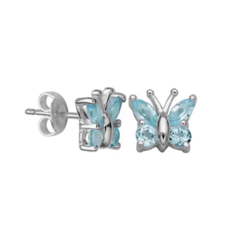 Choice of genuine amethyst, sky blue topaz or garnet butterfly earrings in sterling silver. Post back Polished finish Thialand Imported Material & Care Metal, Sterling silver Clean with a soft cloth.