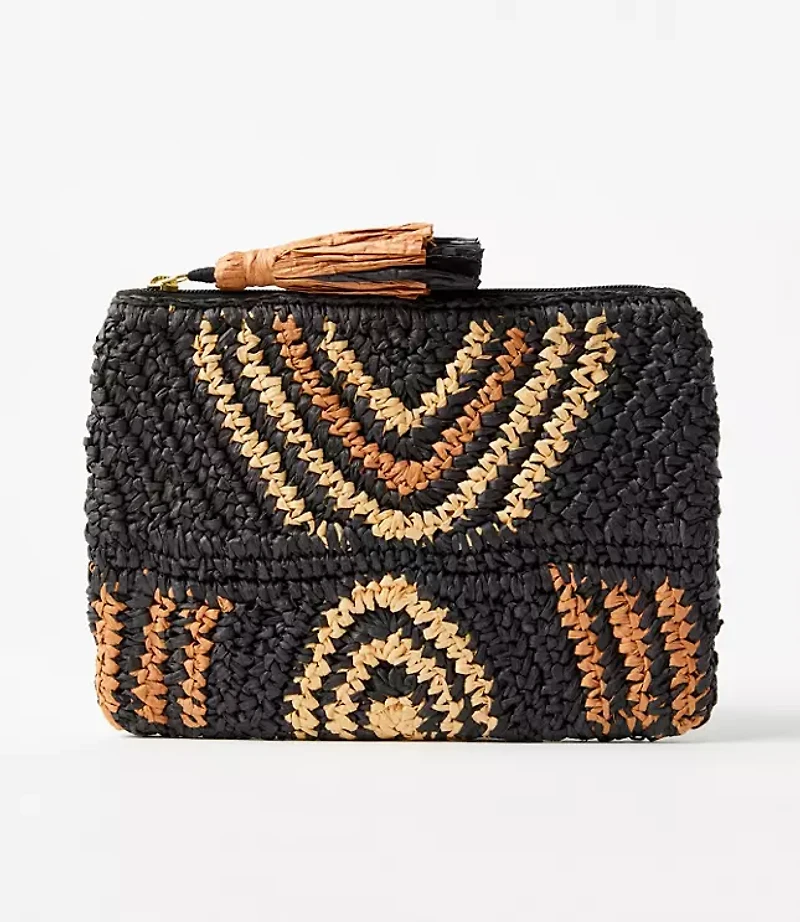 Geo Straw Zip Pouch