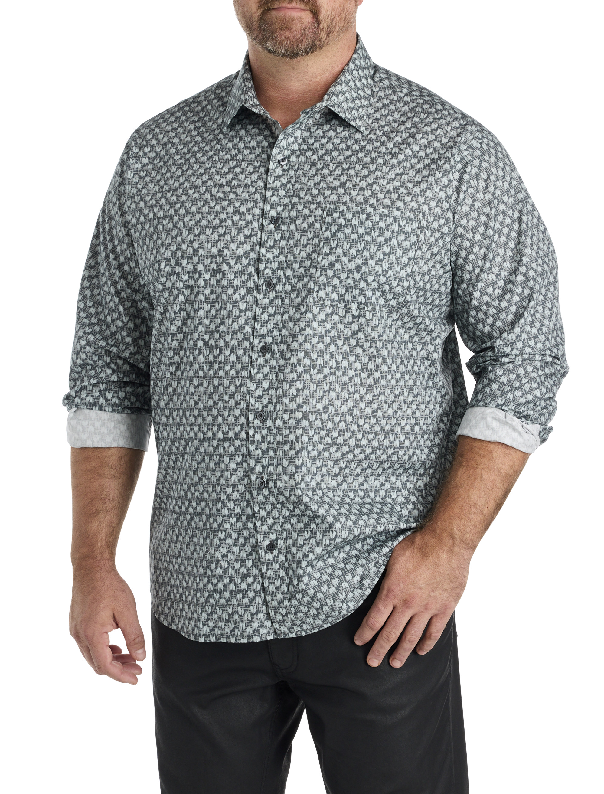 This versatile button-down shirt offers you multiple ways to wear it; try with casual pants for the office or your favorite pair of jeans for a fun night out. The geometric microprint pattern adds eye-catching interest. It features finished French seams, created by a technique in which edges of the fabric are enclosed within the seams themselves resulting in a clean and polished finish inside and out for an elevated look. Designed at DXL with precise proportions and the perfect Big and Tall fit, it's crafted in soft, 100% cotton that allows for the freedom to move without restriction and is roomy enough to layer over a tee if you want to wear it untucked.