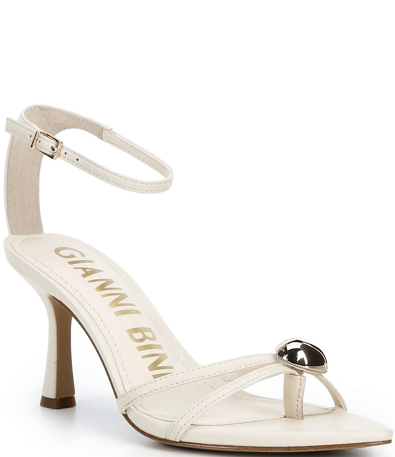 From Gianni Bini, the Phoenix Leather Strappy Gold Ornament Dress Sandals feature: Leather upper Goldtone hardware detail  Ankle strap with adjustable buckle closure  Synthetic lining 4mm padded memory foam sock Synthetic outsole Approx. 2.56" heel height Imported.