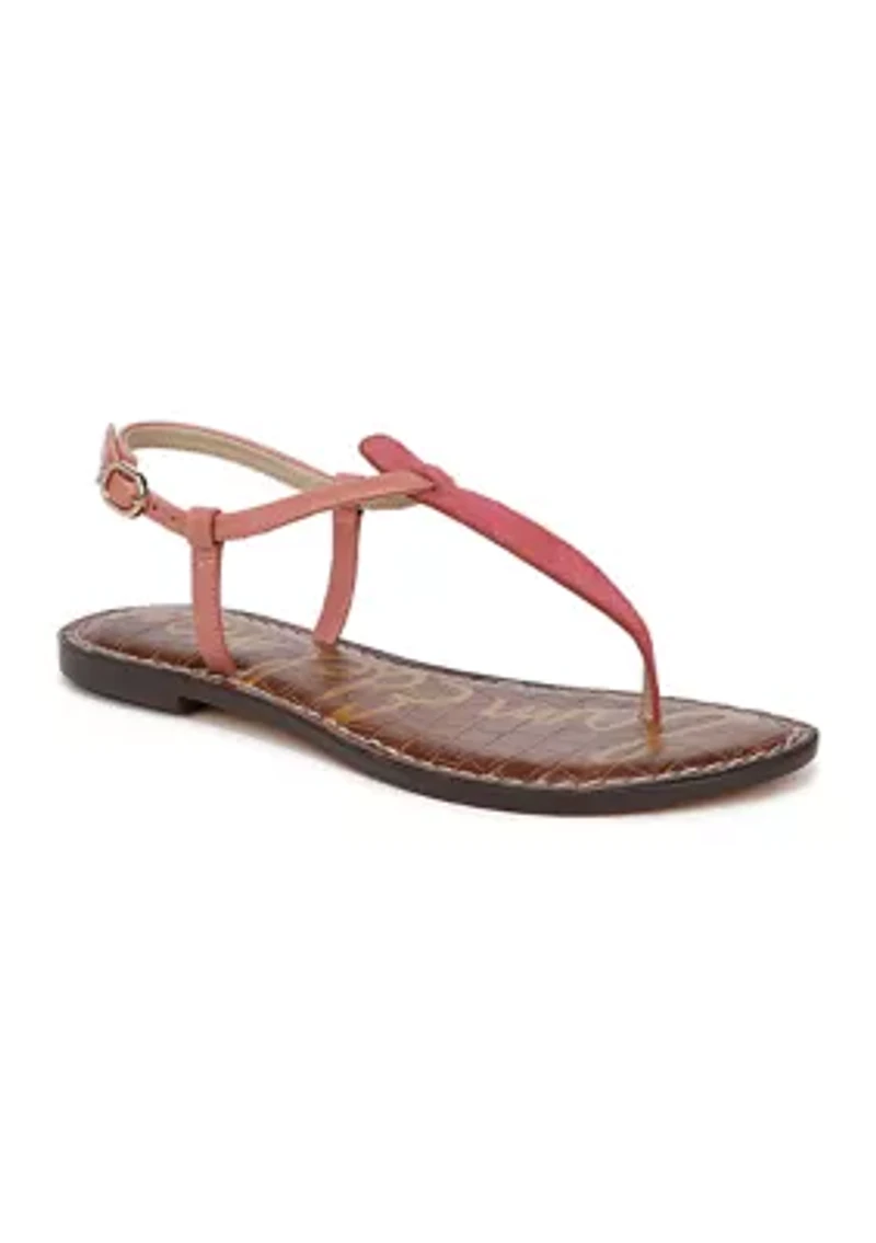Featured in the Sam Edelman Icons Collection, the iconic Gigi Flip Flop Sandals are a warm-weather must. These sandals have an adjustable ankle strap and a signature padded insole for all-day comfortable wear. Whether you're searching for the perfect leather sandals to wear on your next beach trip or a stylish flat sandal to complement your summer office look, the Gigi has what you need! The classic style is Palm Beach chic with everything from white jeans to a printed sundress. Buckle closure Imported Product Specifications 0.25'' heel Medium width Material Lining: synthetic; Outsole synthetic Leather