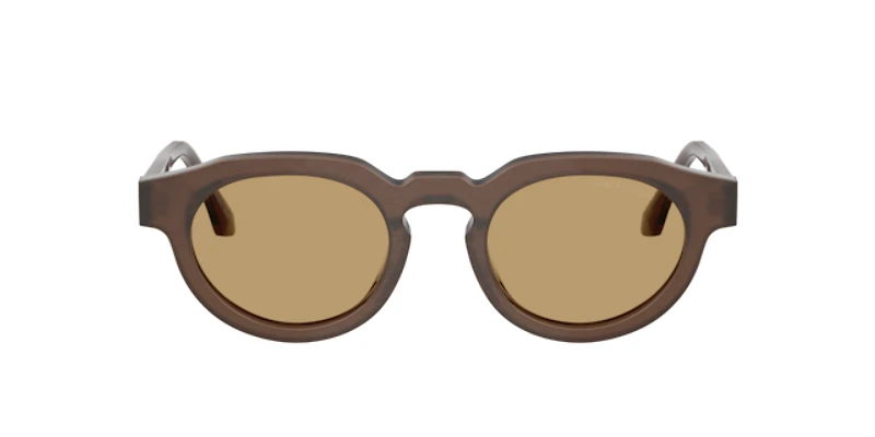 The giorgio armani ar8255u sunglasses feature round frames crafted from durable plastic, blending vintage-inspired charm with modern sophistication. Defined by a bold acetate silhouette, these giorgio armani sunglasses showcase a keyhole bridge for a touch of retro flair. The brown/tan frames and solid brown lenses create a warm, cohesive look, while the logo-accented temples add a refined finishing touch.