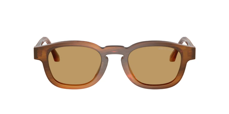 The giorgio armani ar8254u sunglasses bring retro charm to a modern design. These pillow sunglasses, crafted from lightweight plastic, feature a bold acetate construction highlighted by an orange and yellow brushed palette. The classic keyhole bridge adds vintage allure, while the solid brown lenses provide full uva/uvb protection. Distinctive and stylish, the temples are adorned with the iconic giorgio armani logo.