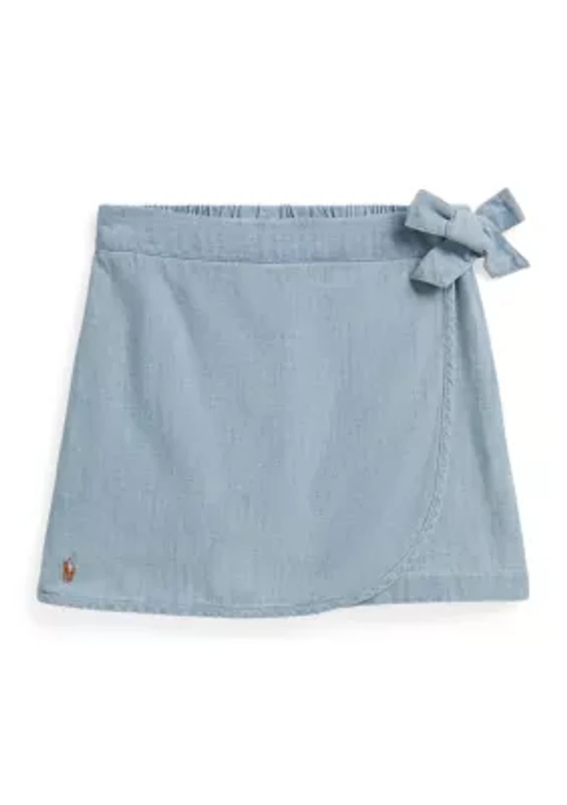Girls 2-6 Indigo Chambray Faux-Wrap Skorts