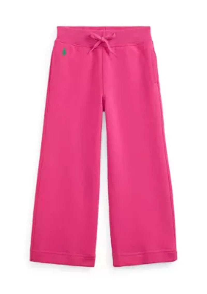 These cotton-blend pants are cut for a wide-leg silhouette, washed for added comfort and embroidered with Ralph Lauren Childrenswear's signature Pony. Elastic waistband with drawstring Wide-leg silhouette Signature embroidered Pony at the right hip Side on-seam pockets Imported Product Specifications Size 4 has a 7.5" rise, a 16.25" inseam, and a 7" leg opening Material & Care 75% cotton, 25% polyester Machine washable