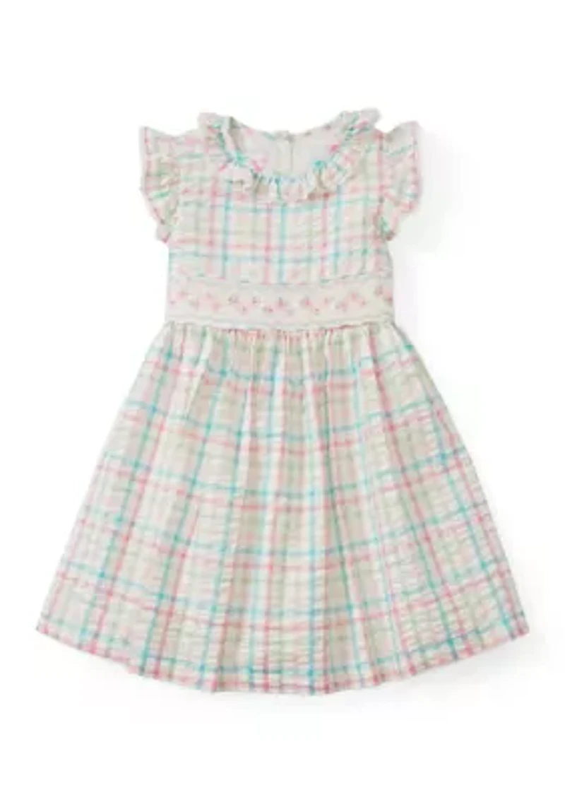 Girls 4-6 Check Print Smocked Dress