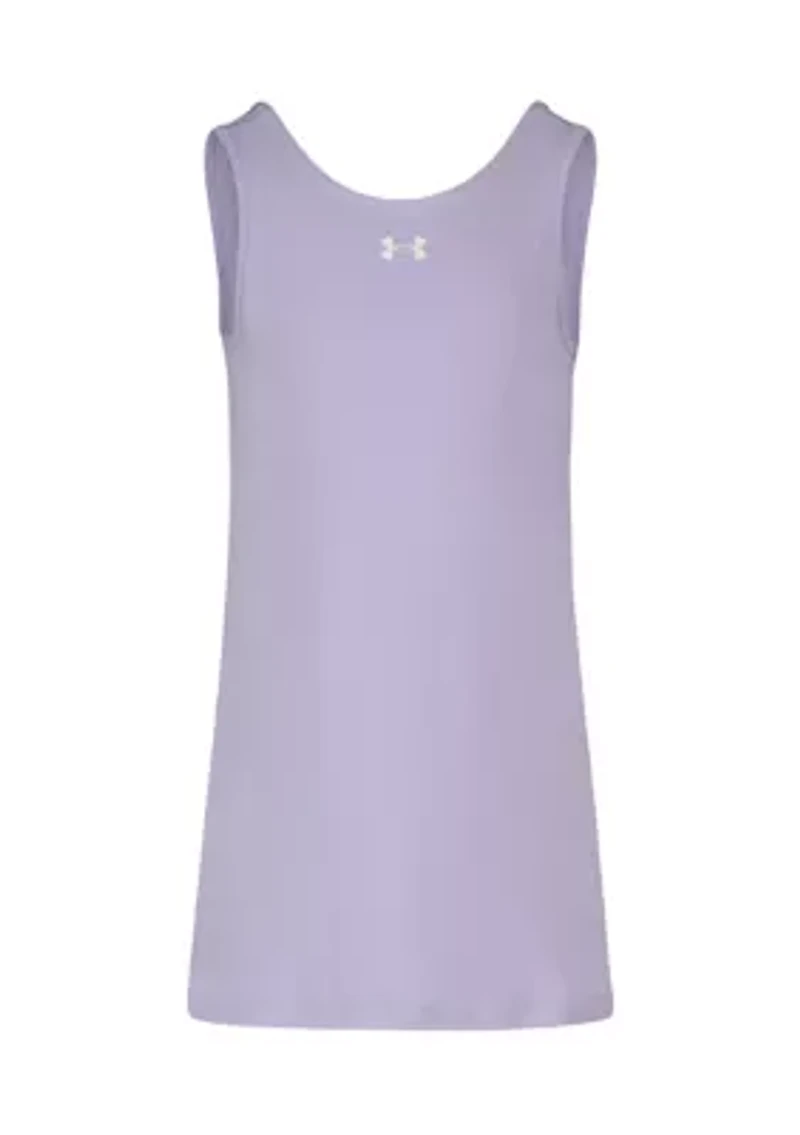 Let her move with confidence in this athletic tank dress from Under Armour®. Designed for active girls who love to play, train and be themselves, this dress features an interior romper with a back. Pullover Crew neck Imported Material & Care Polyester, spandex Machine washable