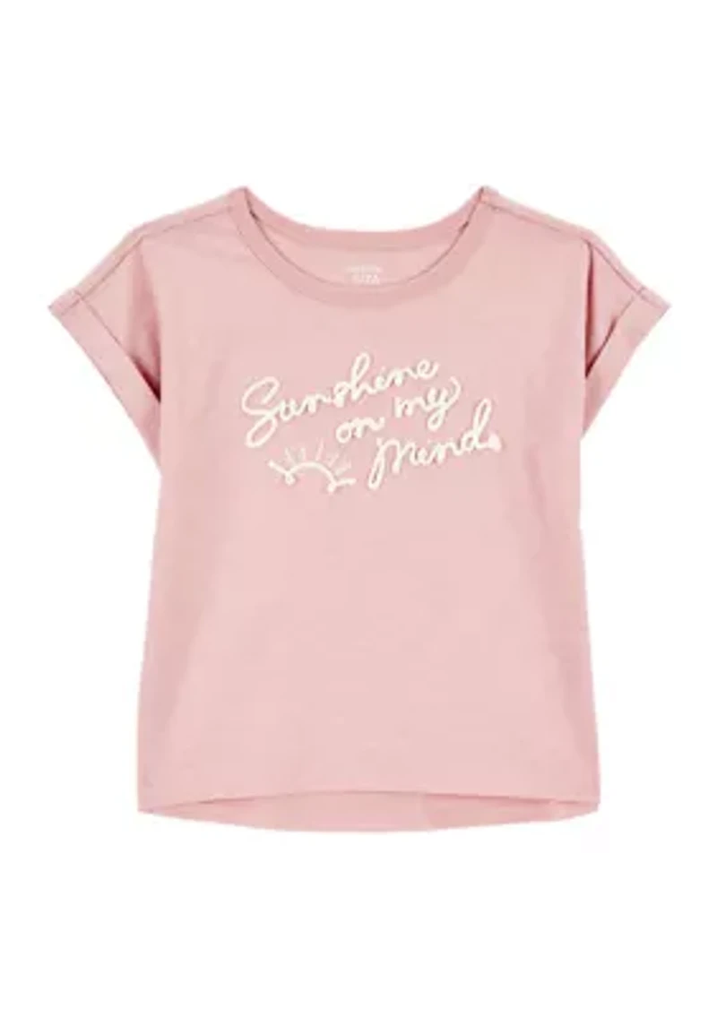 She's ready for anything in this adorable t-shirt from Carter's®. It's complete with short sleeves and an inspirational message for all to see. Pair it with her favorite jeans or leggings for an unbeatable look! Pullover Crew neck Short sleeves Imported Material & Care Cotton, polyester Machine washable