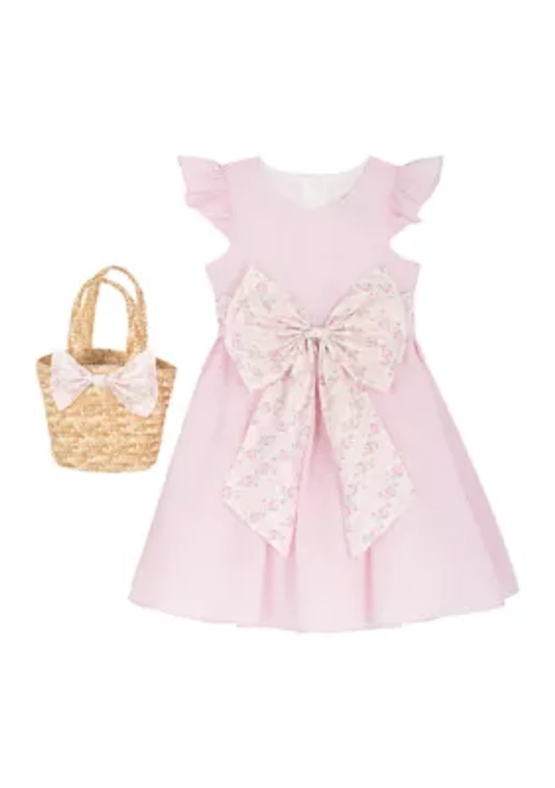 This charming Rare Editions dress is perfect for your little girl, featuring a flattering fit-and-flare design and a lovely floral-print bow for all-day comfort and style. Zip back Square neck Imported Material & Care Cotton, polyester Machine washable
