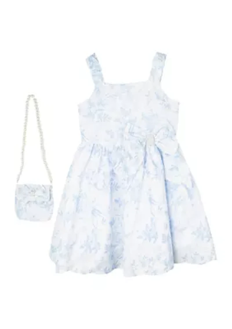 Girls 4-6x Toile Bow Waist Dress