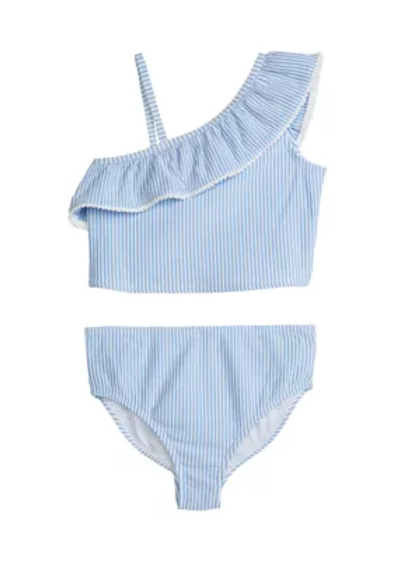 Sweeten her swimwear assortment with this adorable seersucker swimsuit from Crown & Ivy™. 2-piece set Top: pullover, asymmetrical neck, sleeveless Bottoms: elastic waistband Imported Belk Exclusive Material & Care Polyester, nylon Machine washable
