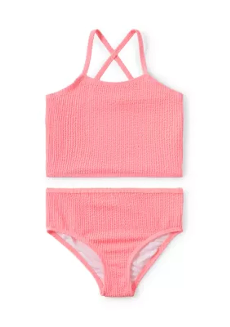 Girls 7-16 2 Piece Texture Ribbed Swimsuit