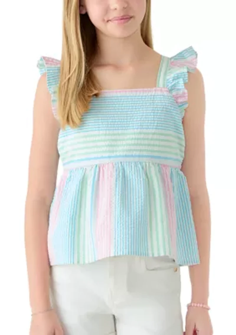Girls 7-16 Bow Back Seersucker Top
