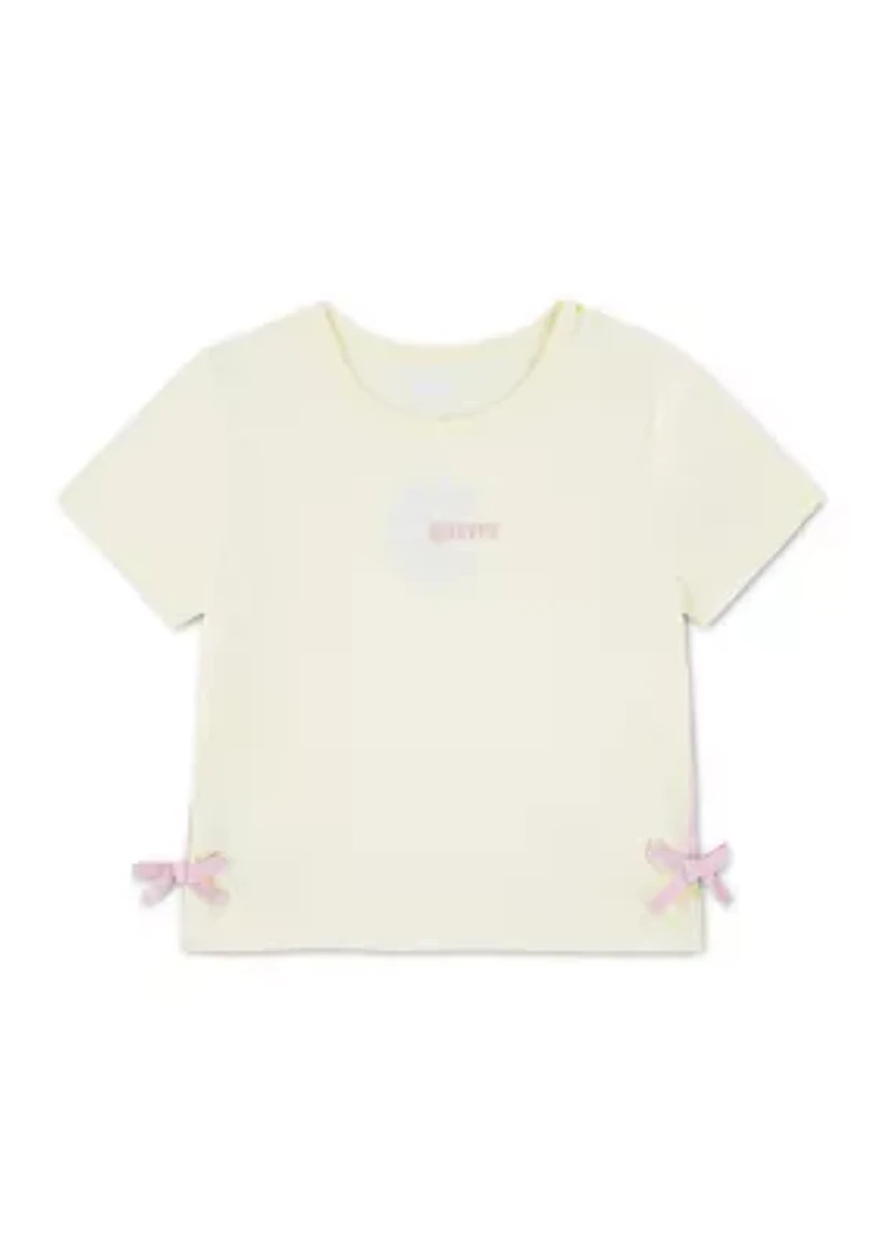 Featuring lovely bow details on the sleeves, Levi's® short-sleeve t-shirt is a stylish, versatile addition to your girl's wardrobe. Pullover Crew neck Short sleeves Imported Material & Care Cotton, polyester Machine washable