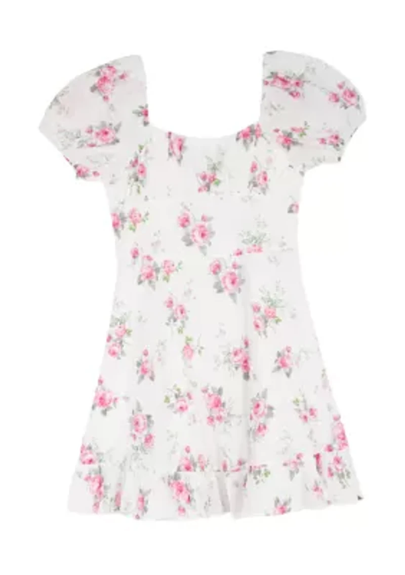 Girls 7-16 Floral Clip Dot Ruffle Dress