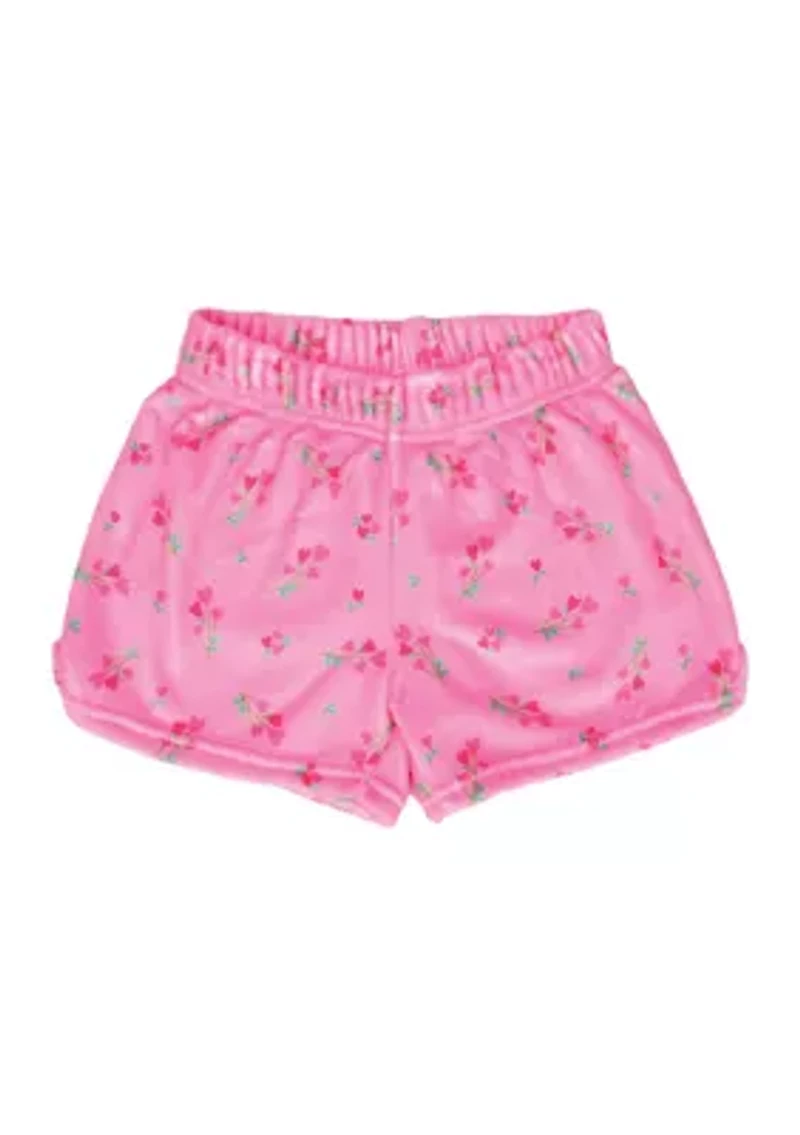 Girls 7-16 Flower Heart Printed Plush Shorts