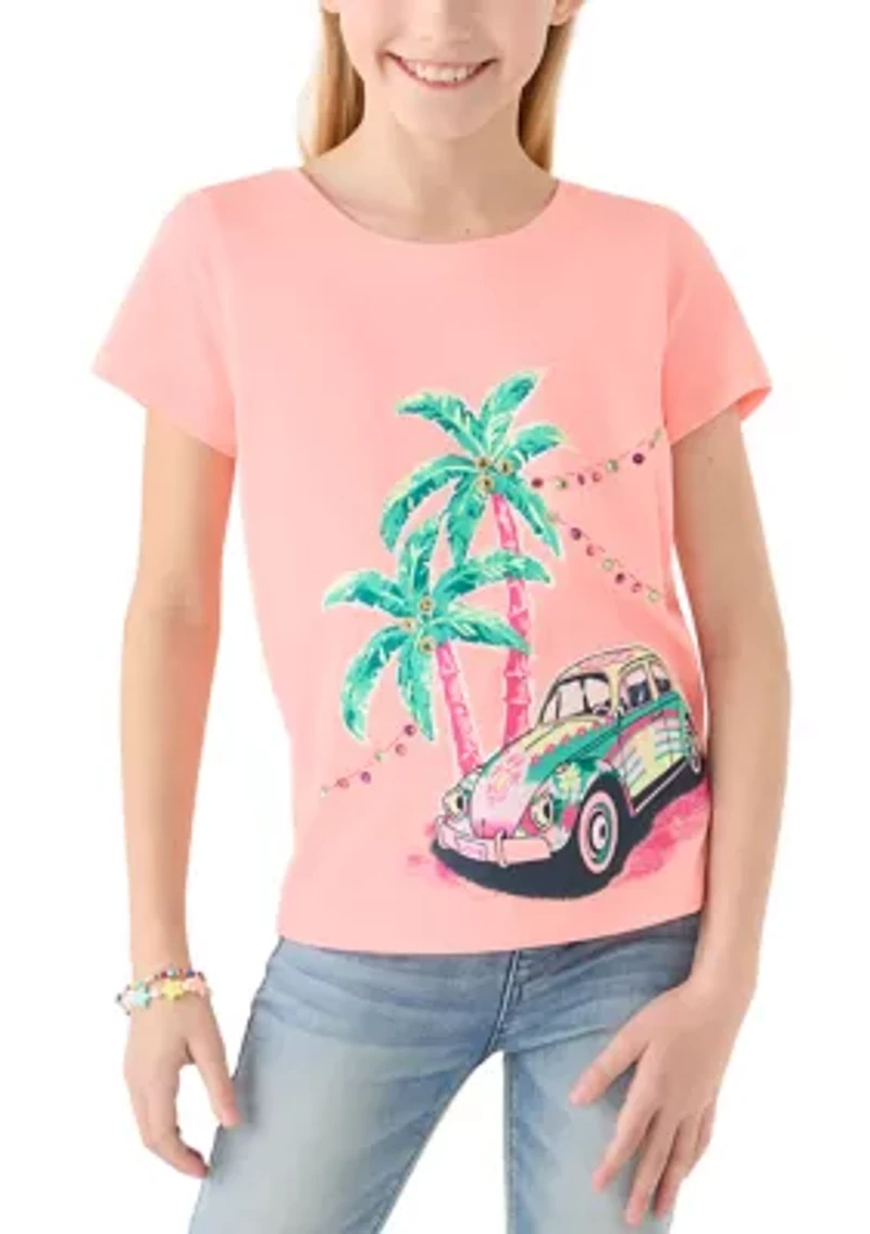 Featuring fun graphics on front and back, Crown & Ivy™'s short-sleeve t-shirt is a stylish, versatile addition to your girl's wardrobe. Pullover Crew neck Short sleeves Imported Belk Exclusive Material & Care Cotton, polyester Machine washable