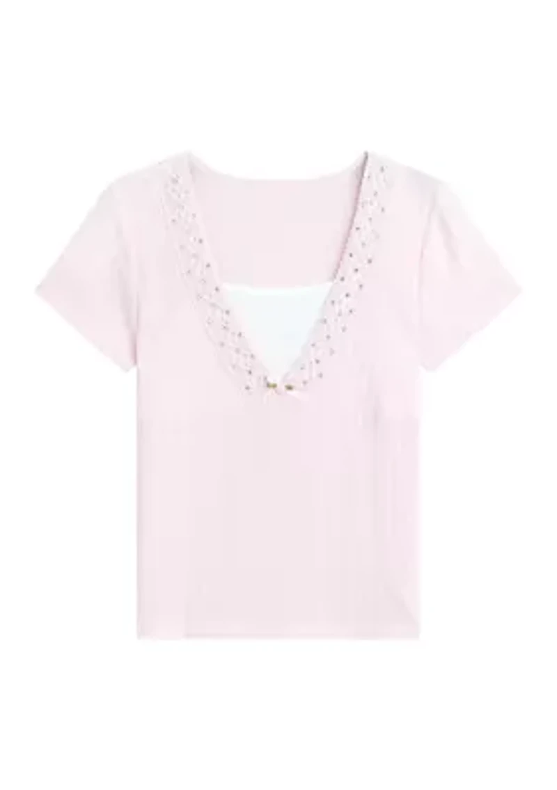 Girls 7-16 Pink Lace Trim Top in Chattanooga, TN