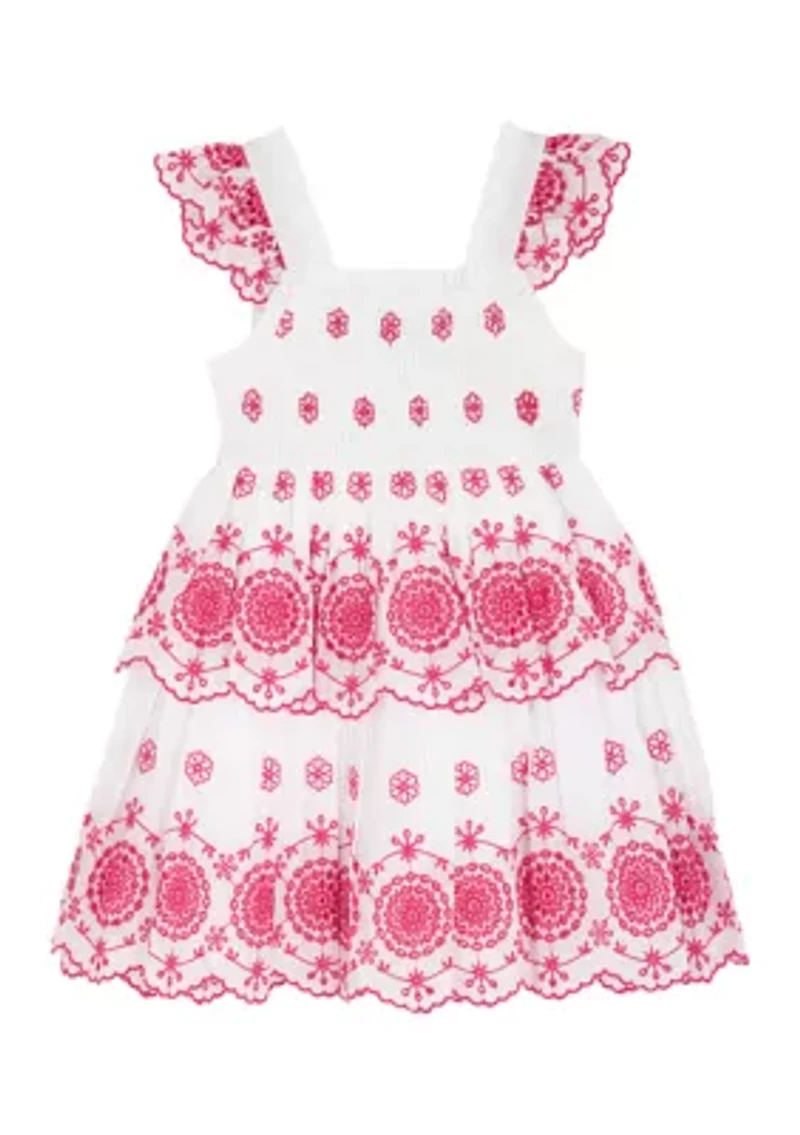 Girls 7-16 Pink Tiered Eyelet Dress