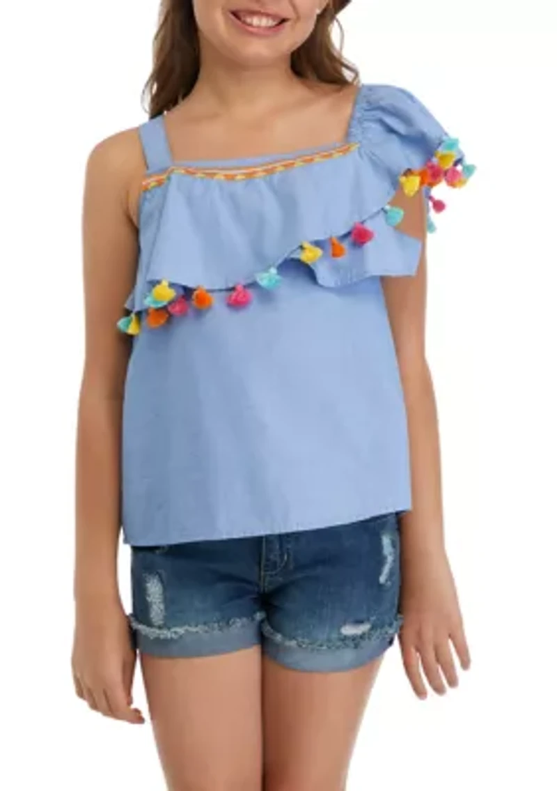 Girls 7-16 Pom One Shoulder TopGirls 7-16 Pom One Shoulder TopGirls 7-16 Pom One Shoulder TopGirls 7-16 Pom One Shoulder Top