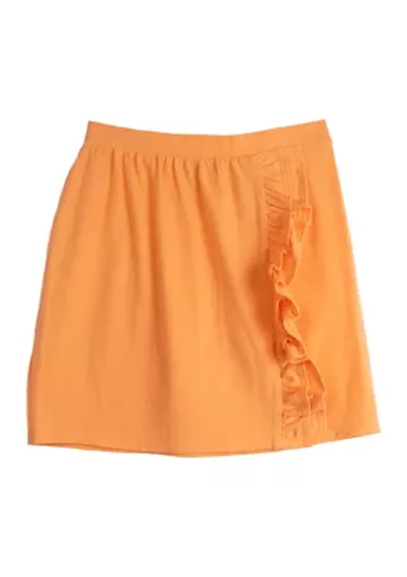 Delicate ruffles add a delightful touch to this solid skirt from Counting Daisies. Elastic waistband Imported Product Specifications Knee length Material & Care Cotton, polyester, spandex Machine washable