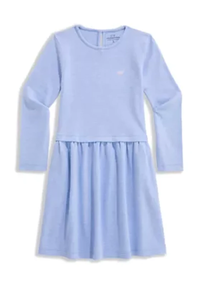 Lovely and lightweight, this cute dress from Vineyard Vines is an adorable choice for her next occasion. Keyhole with button closure Crew neck Long sleeves Imported Material & Care Cotton, polyester Machine washable