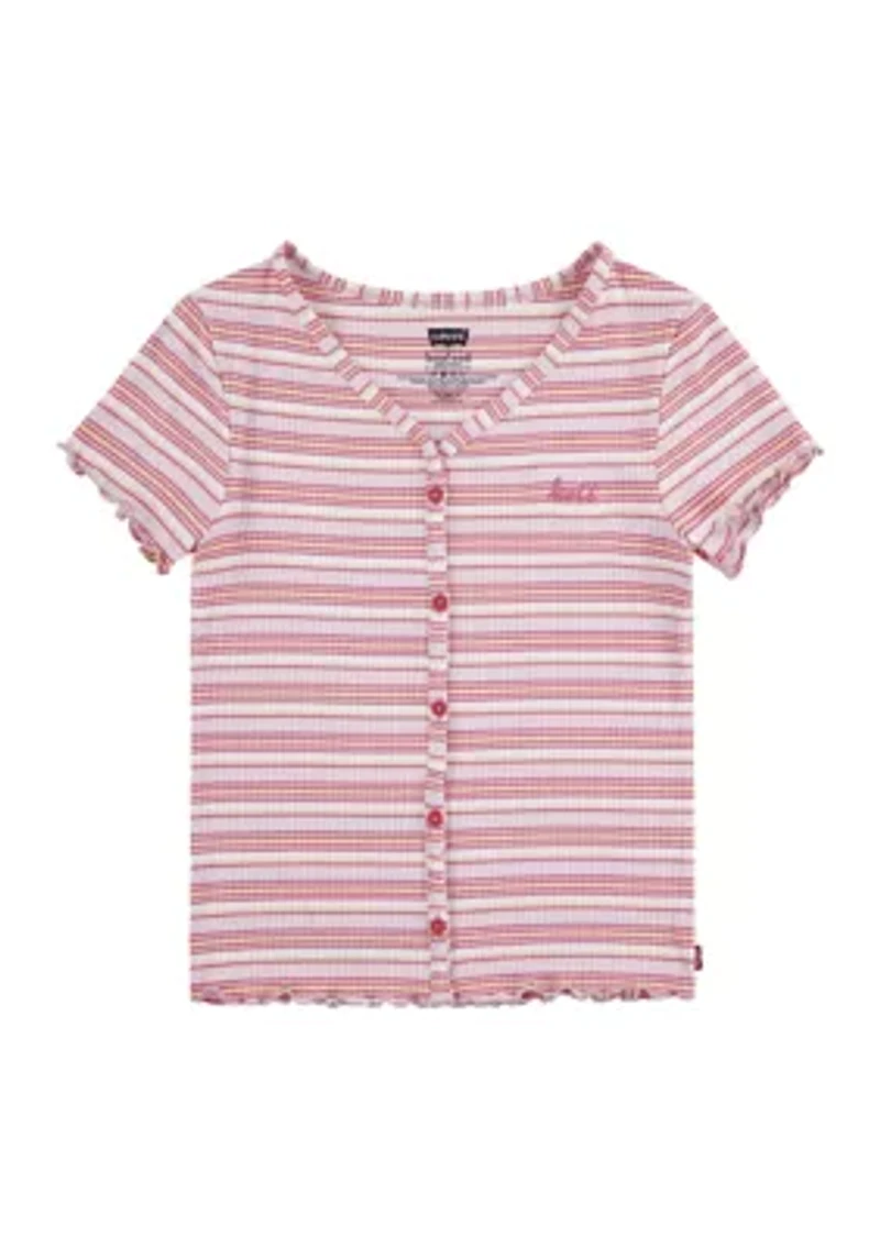 Cute and casual, this striped top from Levi's® pairs perfectly with her favorite jeans. Button closure V-neck Short sleeves Imported Material & Care Rayon, spandex Machine washable