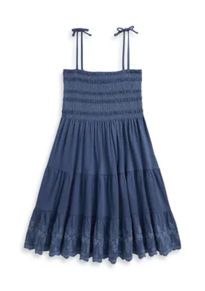 Girls 7-16 Smocked Eyelet Cotton Jersey Dress