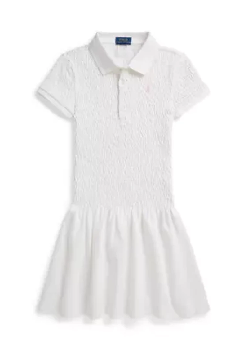 Girls 7-16 Smocked Stretch Mesh Polo Dress
