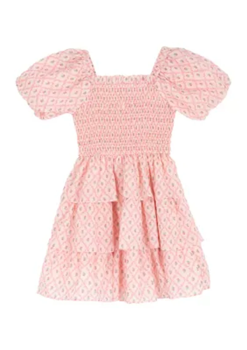 Girls 7-16 Smocked Trellis Printed Tier Dress