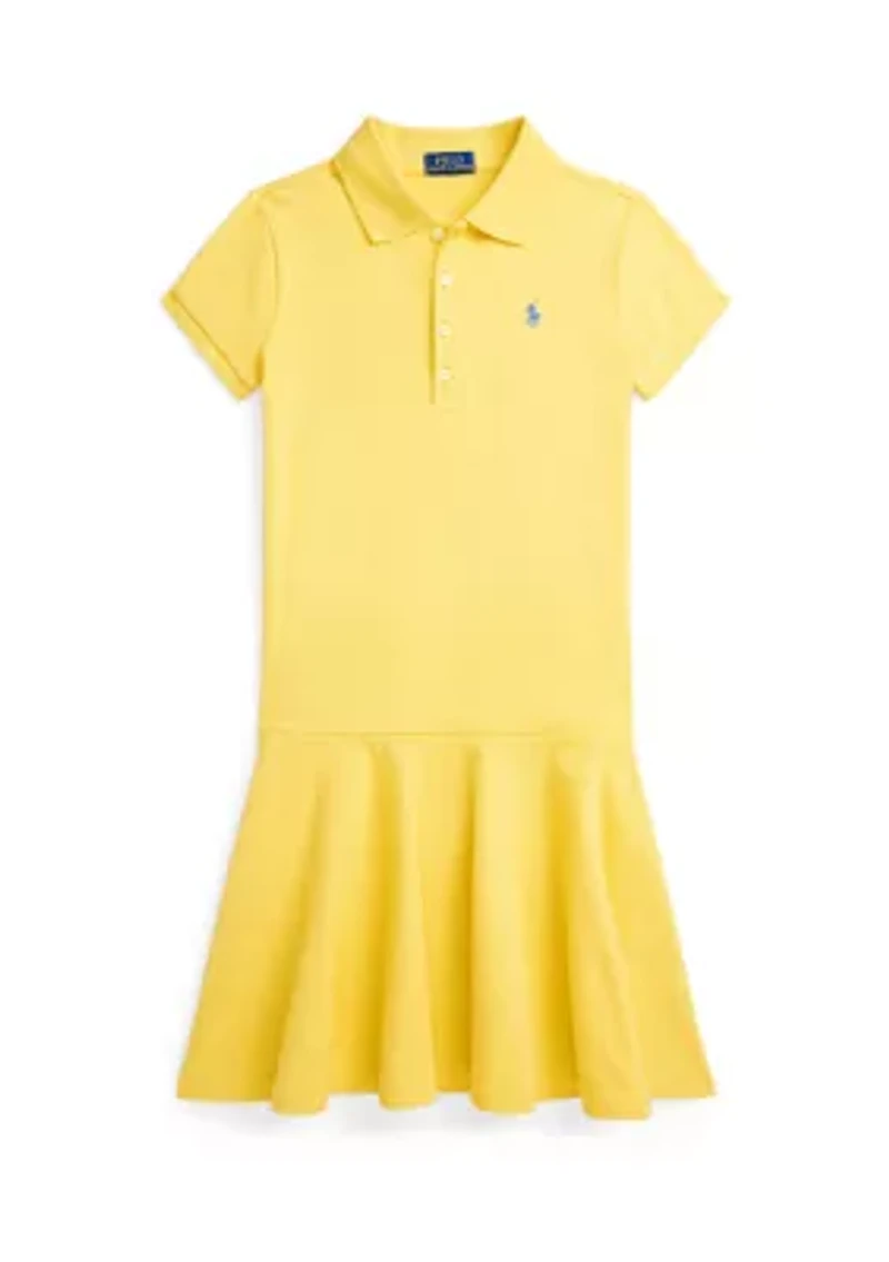 Ralph Lauren Childrenswear's Polo dress is made with breathable stretch-cotton mesh and finished with the signature embroidered Pony. Drop-waist silhouette Size medium has a 29" body length (front and back) Signature embroidered Pony at the left chest Ribbed Polo collar Four-button placket Short sleeves with ribbed armbands Ruffled skirt By choosing Ralph Lauren's cotton products, you’re supporting the investment in the Better Cotton™ mission to help cotton communities survive and thrive while protecting and restoring the environment. This product is sourced via a mass balance system and therefore may not contain Better Cotton™. Visit bettercotton.org/massbalance for more information about mass balance Imported Material & Care Cotton, elastane Machine washable
