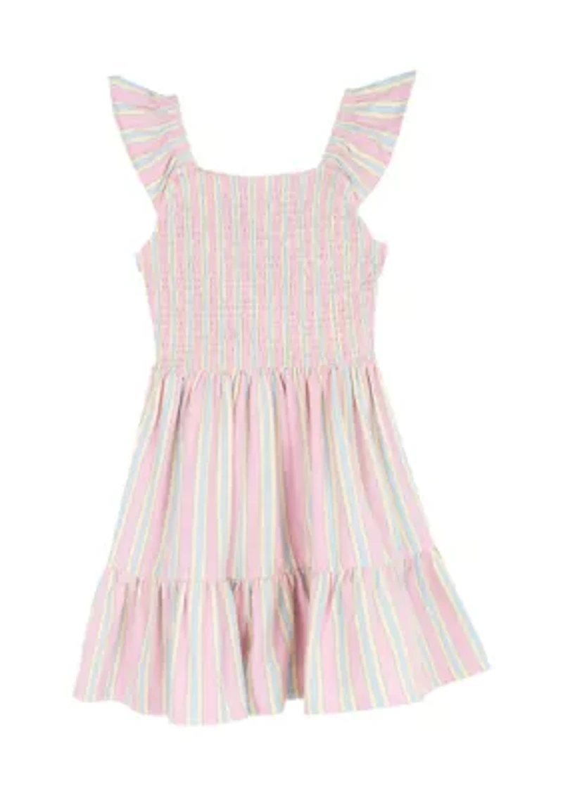 Girls 7-16 Striped Flutter Sleeve Smocked Dress