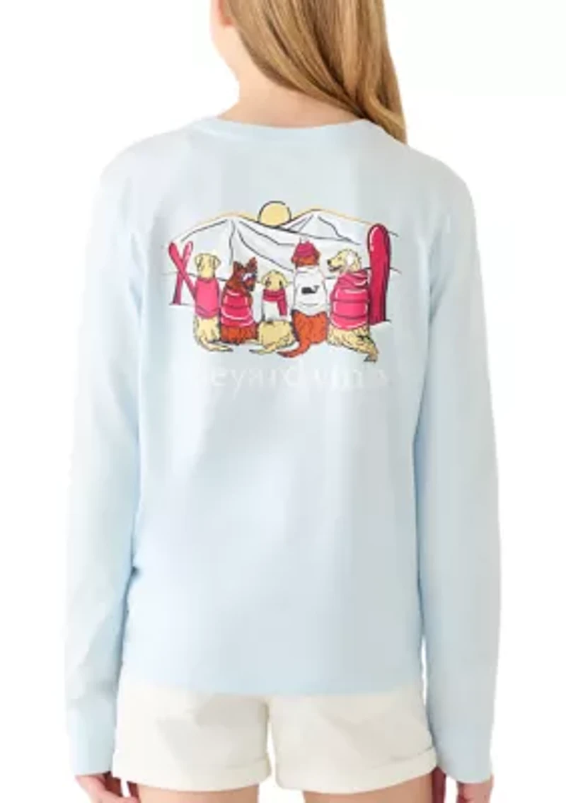 Girls 7-16 Sunset Ski Pups Long Sleeve Pocket Shirt