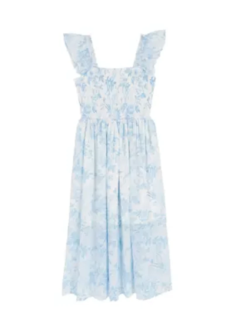 Girls 7-16 Toile Smocked Maxi Dress