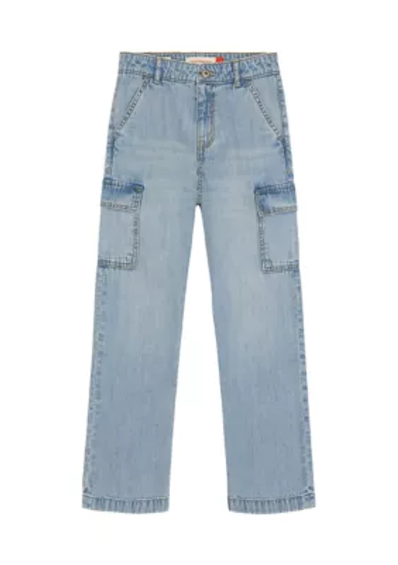Girls 7-16 Wide Leg Demin Cargo Jeans