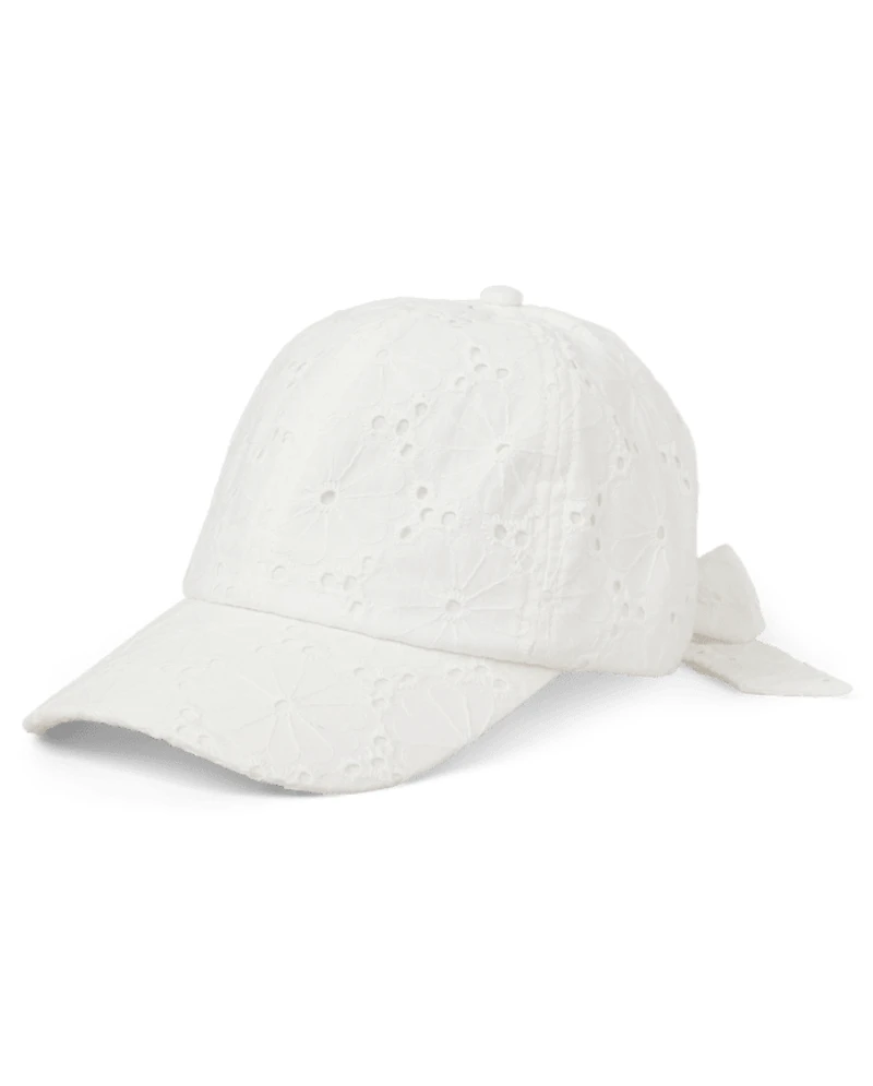 Girls Bow Back Embroidered Eyelet Baseball Hat
