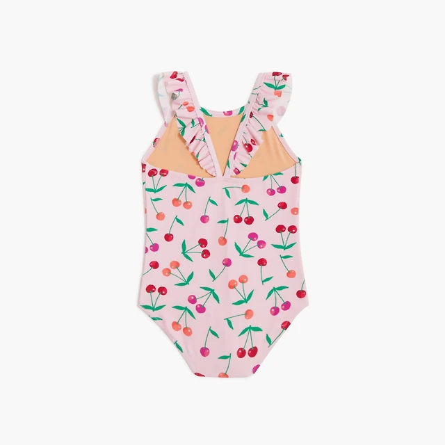 Girls' spring meadow ruffle-strap one-piece swimsuit