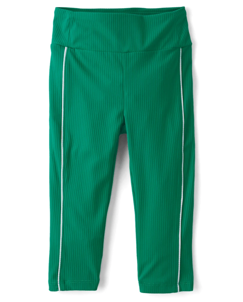 Girls Contrast Ribbed Capri Leggings