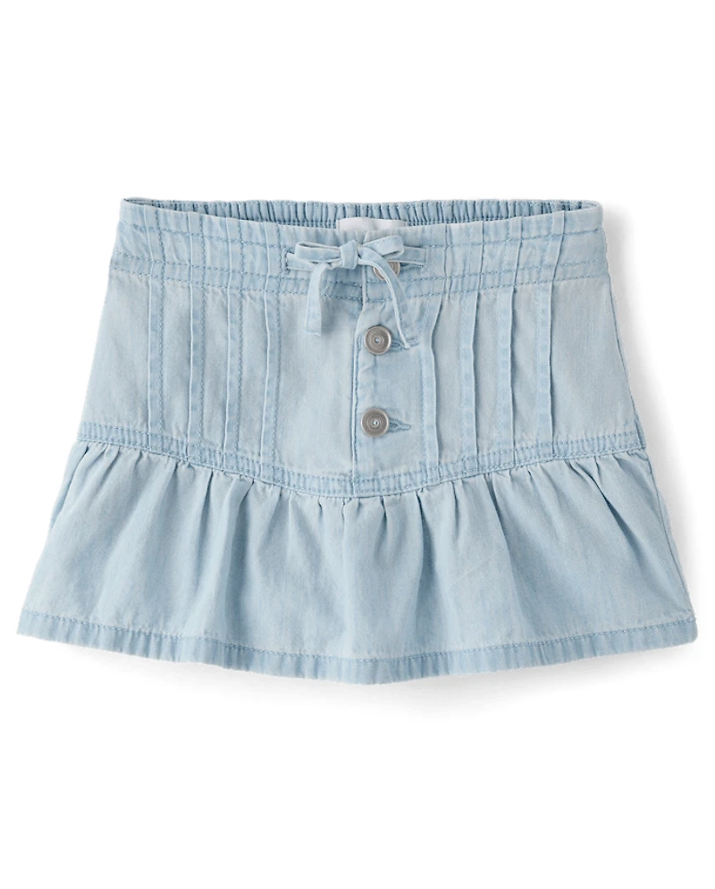 Girls Pintuck Snap Chambray Skort