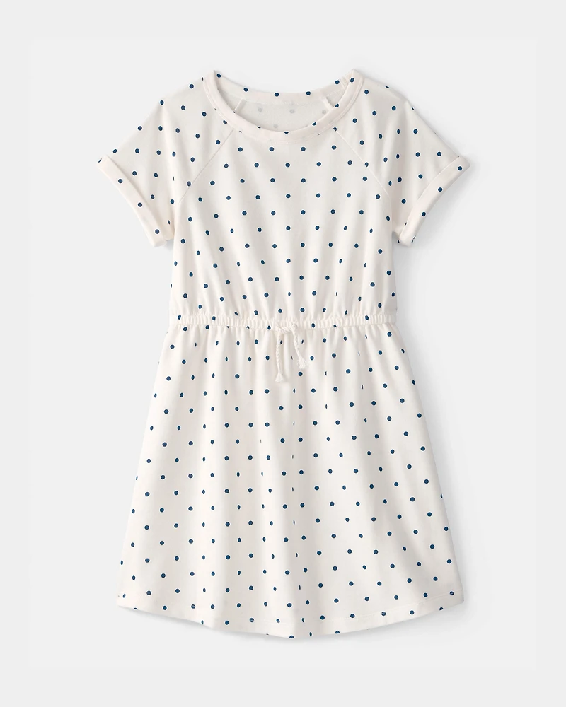Girls Polka Dot French Terry Dress - White/Blue