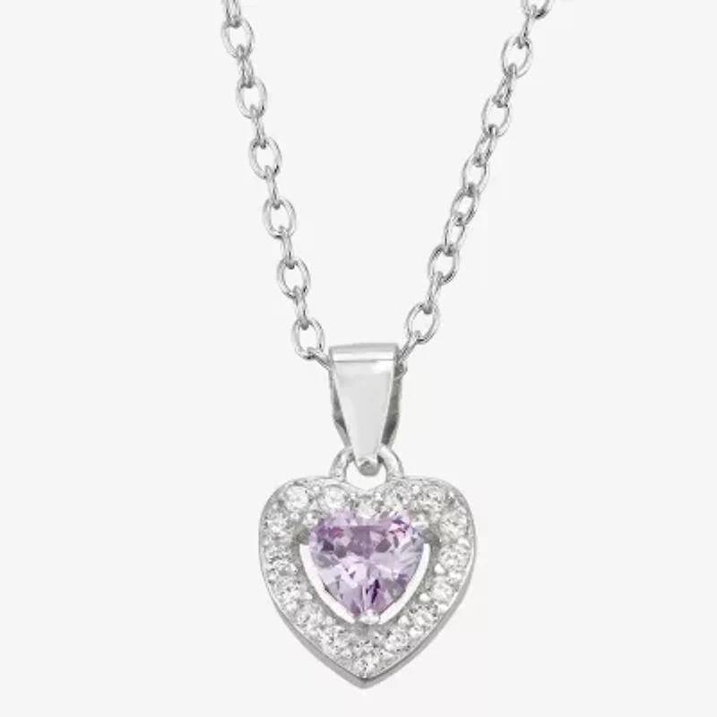 Girls Purple Cubic Zirconia Sterling Silver Cross 15 Inch Pendant Necklace
