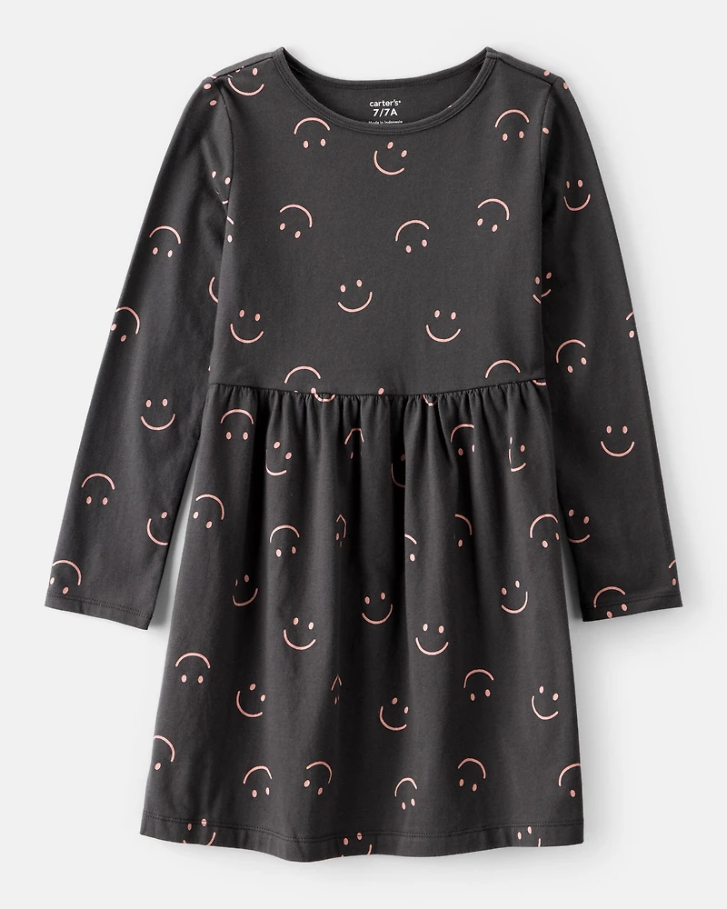 Girls Smile Print Long Sleeve Cotton Dress - Black in Chattanooga, TN