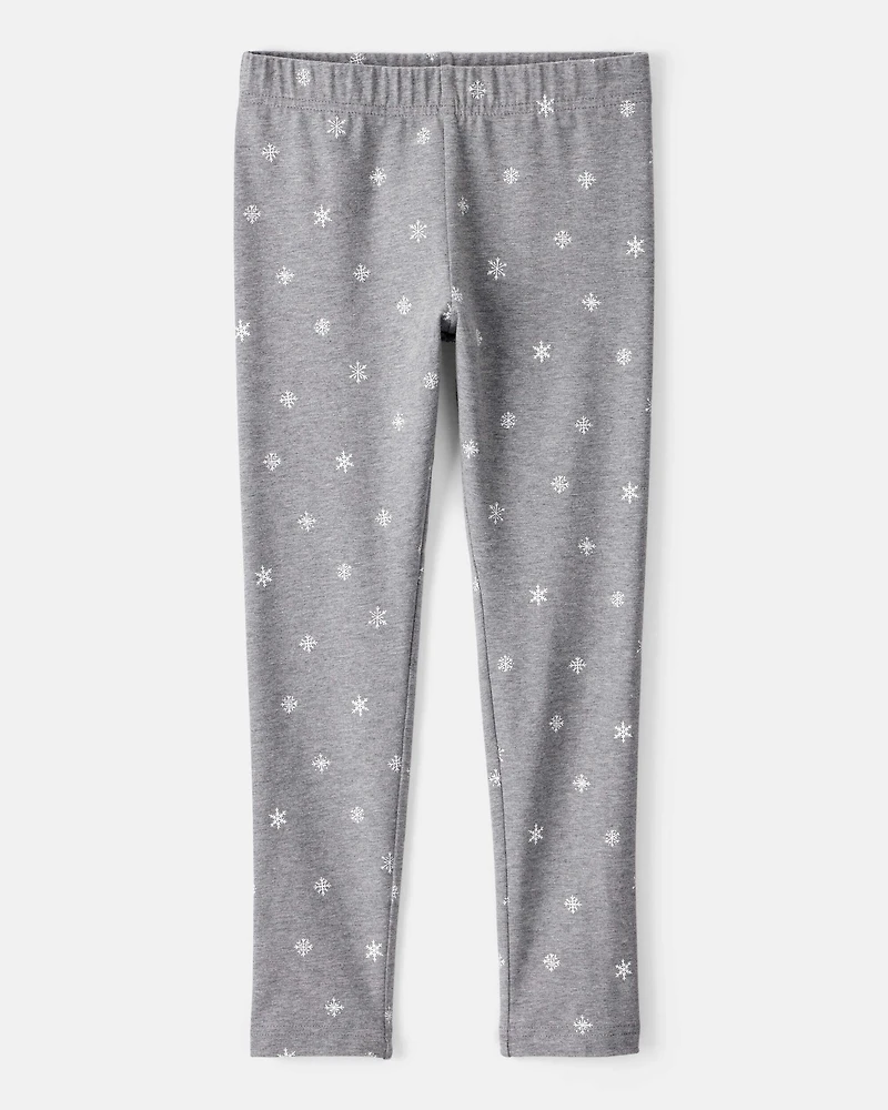 Girls Snowflake Print Cotton Pull-On Stretch Leggings - Grey in Chattanooga, TN