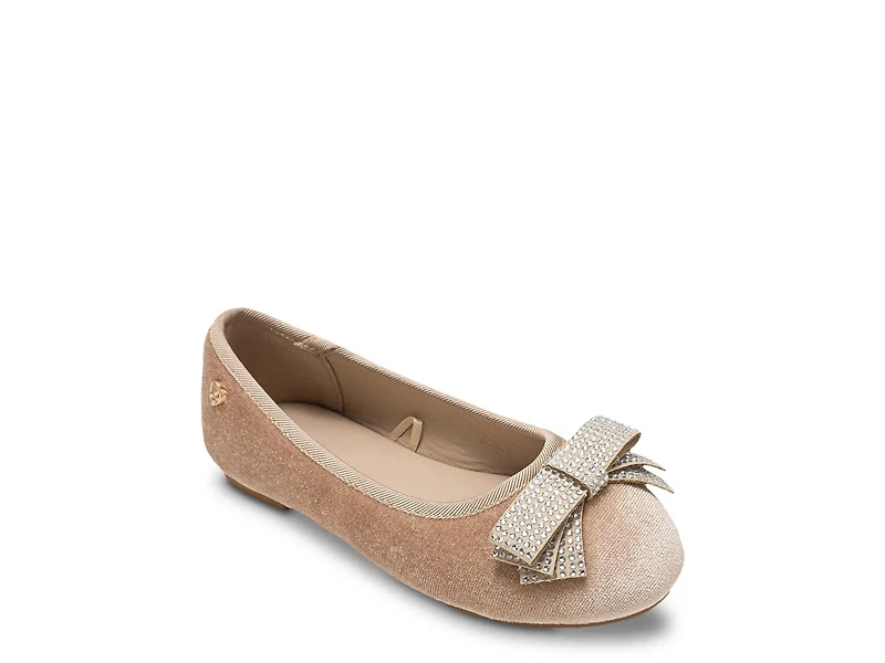 Touch up a number of your little one's ensembles, from the casual to the formal, with the Giselle flat from bebe. A charming bow detail catches the eye, while the padded footbed keeps them comfy.