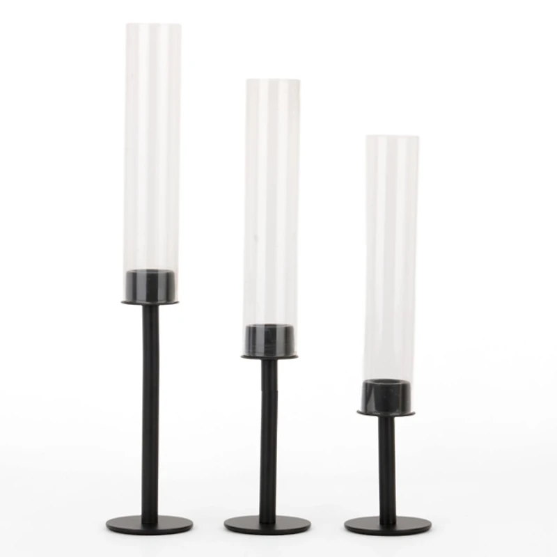 Glass & Black Metal Taper Candle Holders, Set of 3