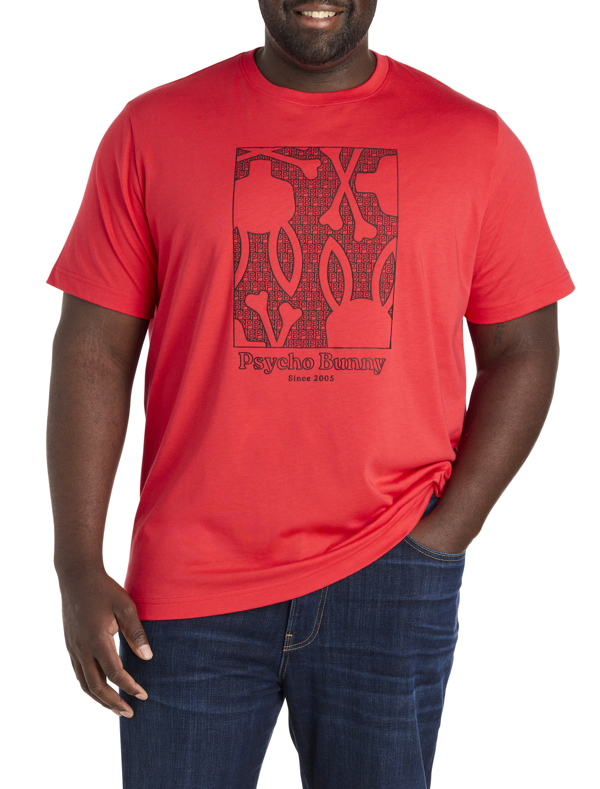 In true Psycho Bunny style, this graphic tee is loud and proud to stand out from the pack with its bold bunny design. Crafted in ultrasoft and durable Peruvian Pima cotton, it's designed with precise proportions and an ideal fit for Big and Tall guys. The taped shoulder seams ensure it never loses its perfect shape. Pair it with your favorite shorts, jeans or joggers for a complete, casual look.