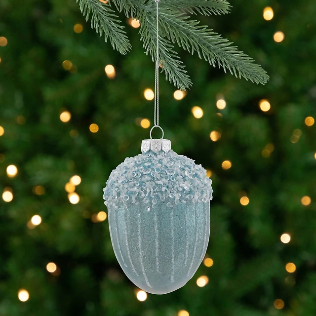 Glittered Mercury Glass Acorn Christmas Ornament - 4.5" - Blue
